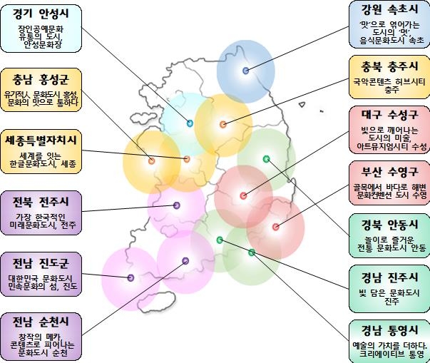 대한민국 문화도시는 문화체육관광부가 약 1년간의 예비사업과 컨설팅, 평가 과정을 거쳐 최종 선정하는 향후 3년간 최대 200억 원(국비 100억 원, 지방비 100억 원)이 투입되는 대한민국을 대표하는 문화사업 중 하나입니다.